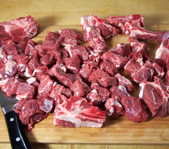 Chopped lean lamb mix on the bone consists of Leg, shoulder, chops and neck